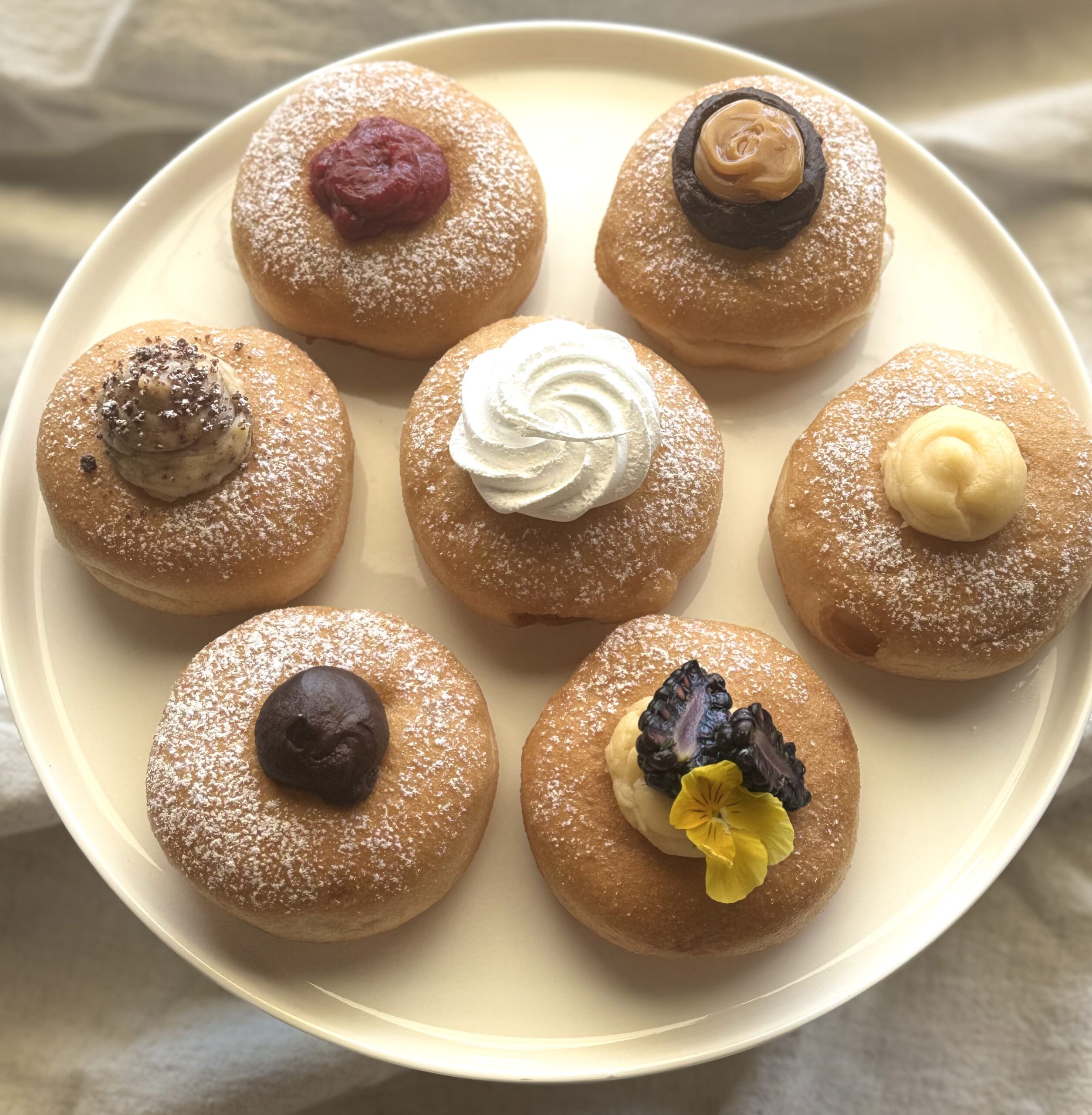 | Doughnuts | Chocolate (Free from gluten, dairy, nuts), Lemon meringue (Free from gluten, dairy, nuts), Vanilla Bean (Free from gluten, dairy, nuts), Strawberry jam (Free from gluten, dairy, nuts), Cinnamon – a pack of 5 units (Vegan, free from gluten, dairy, nuts, soy, yeast), Chef's special assorted gourmet flavours of 10 units plus additional 5 units of vegan cinnamon doughnuts (Free from gluten, dairy, nuts ) |
